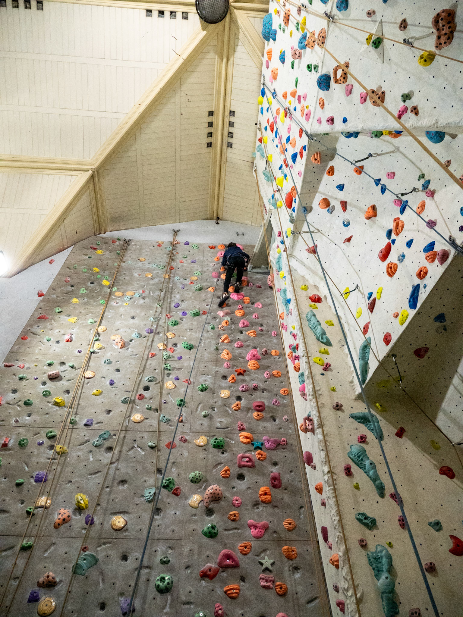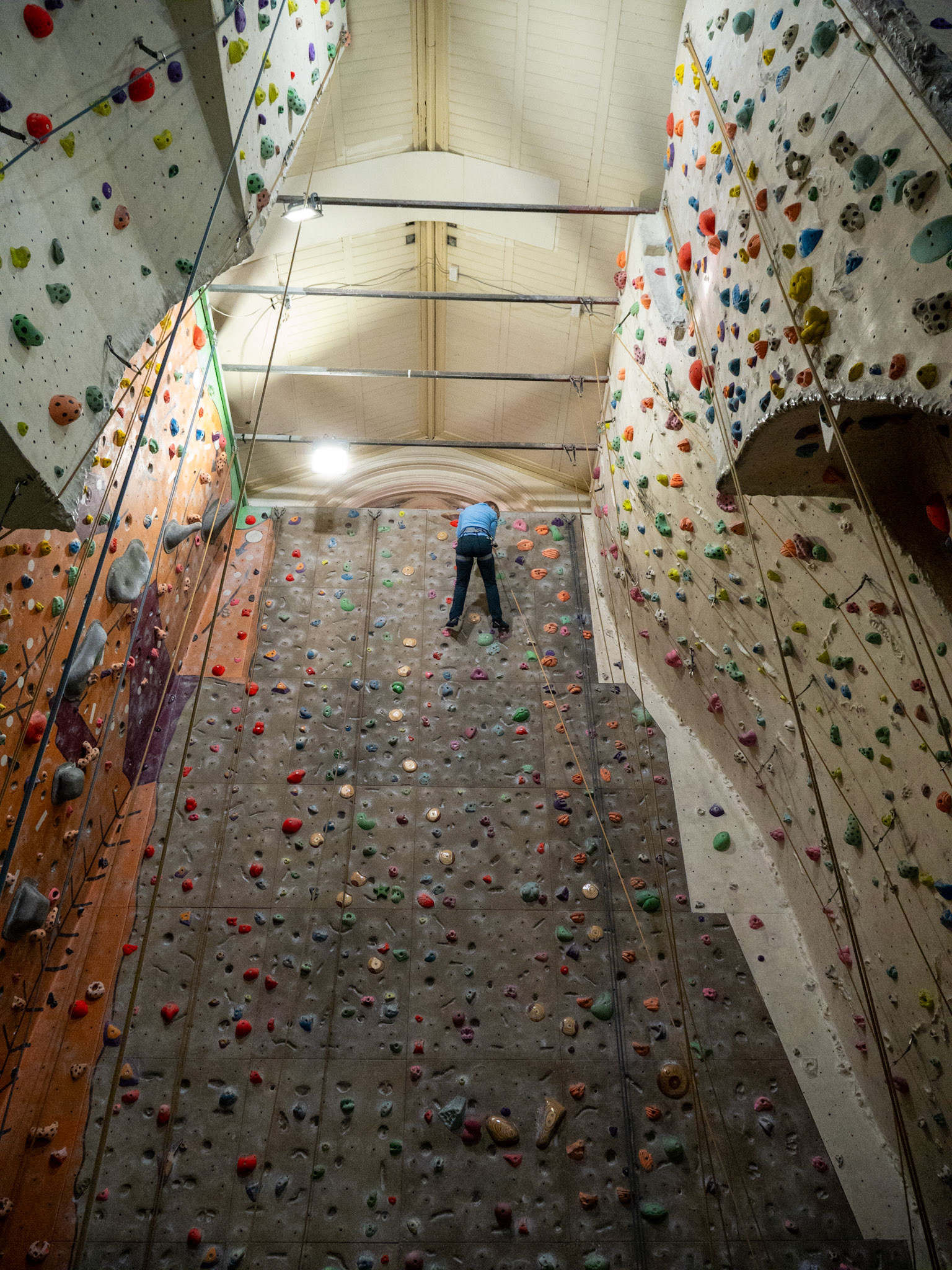 A climbing wall has been built almost to the full height of the roof, requiring the removal of the galleries, but the exterior of the building remains unaltered.
