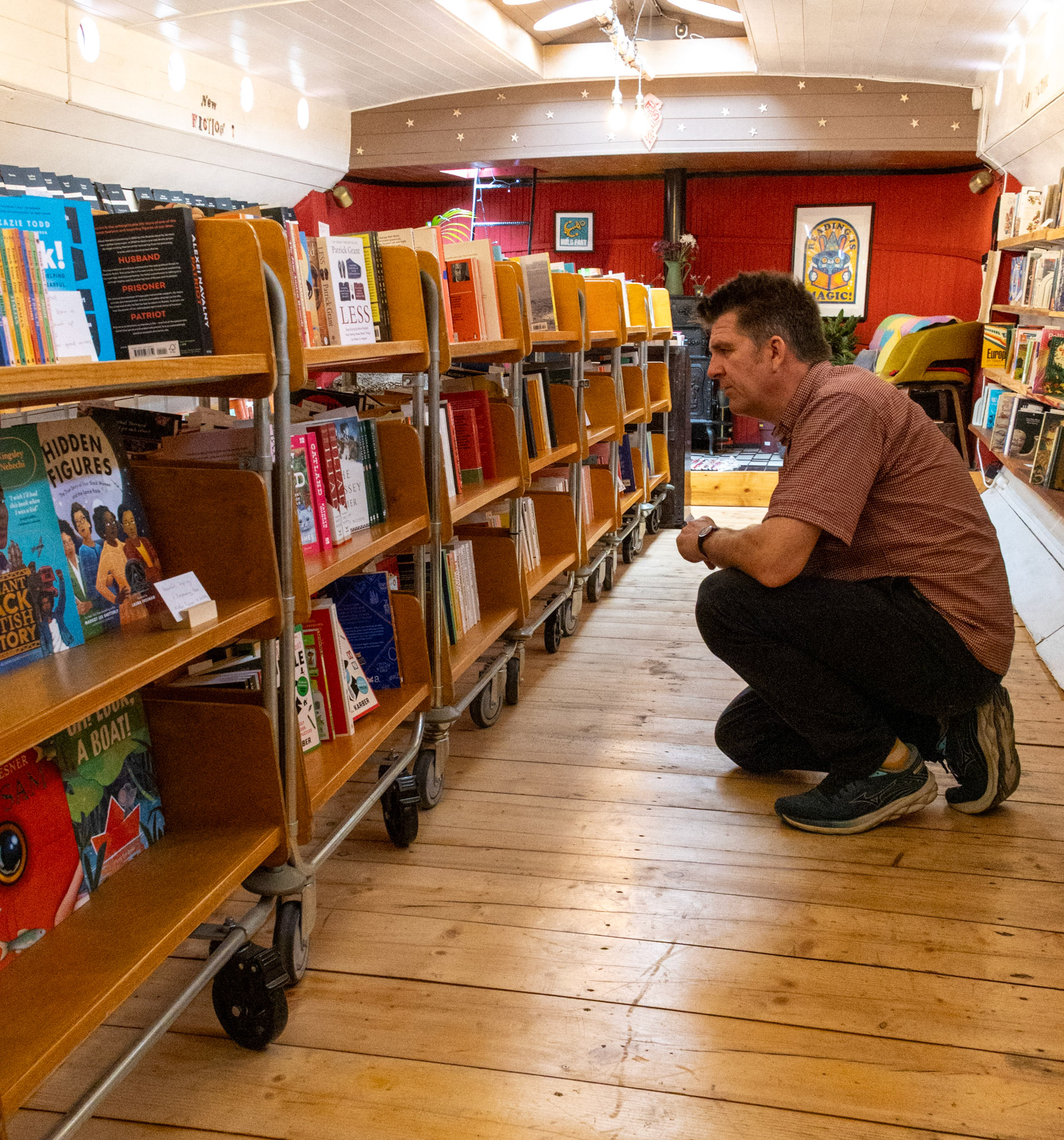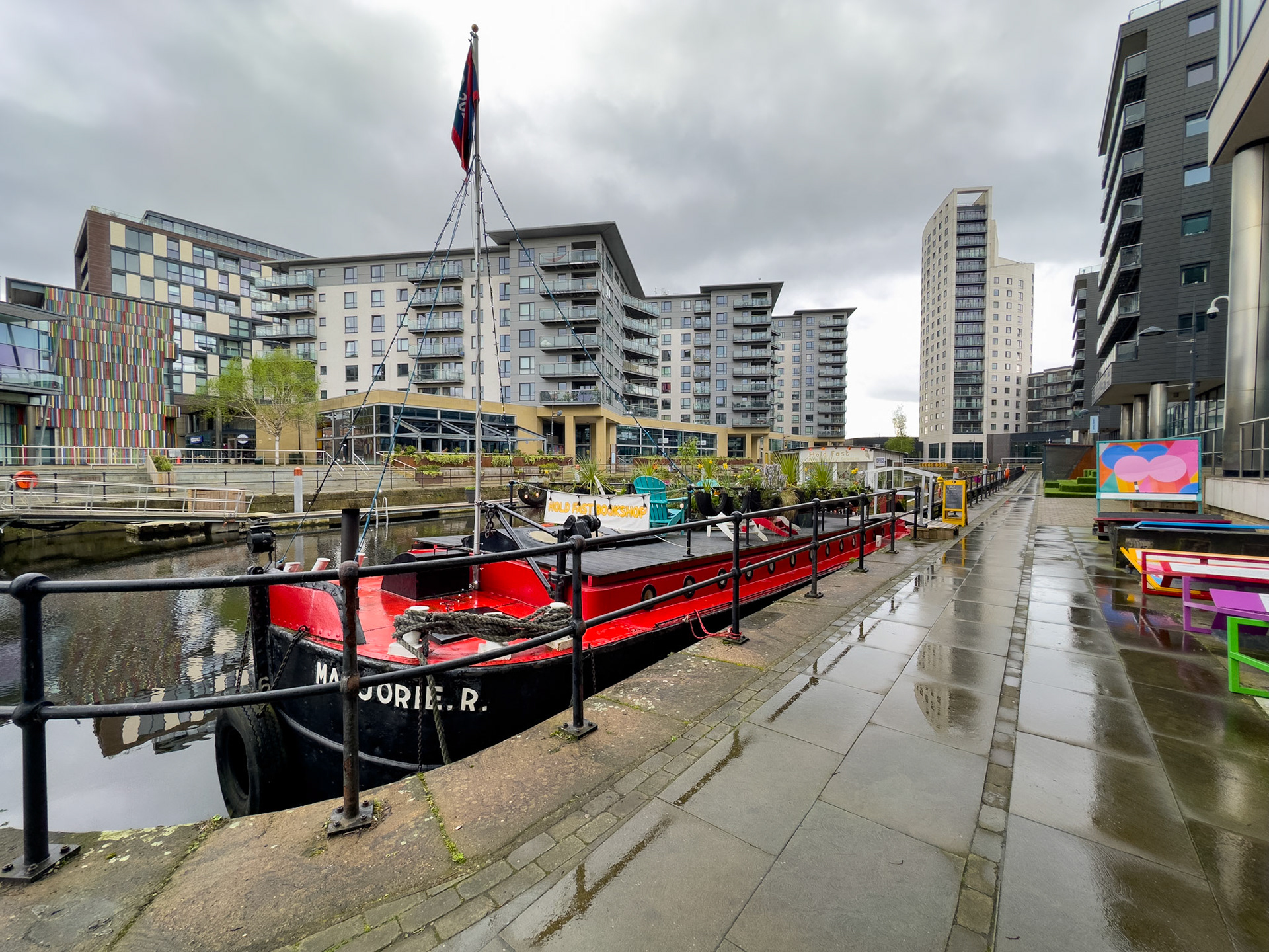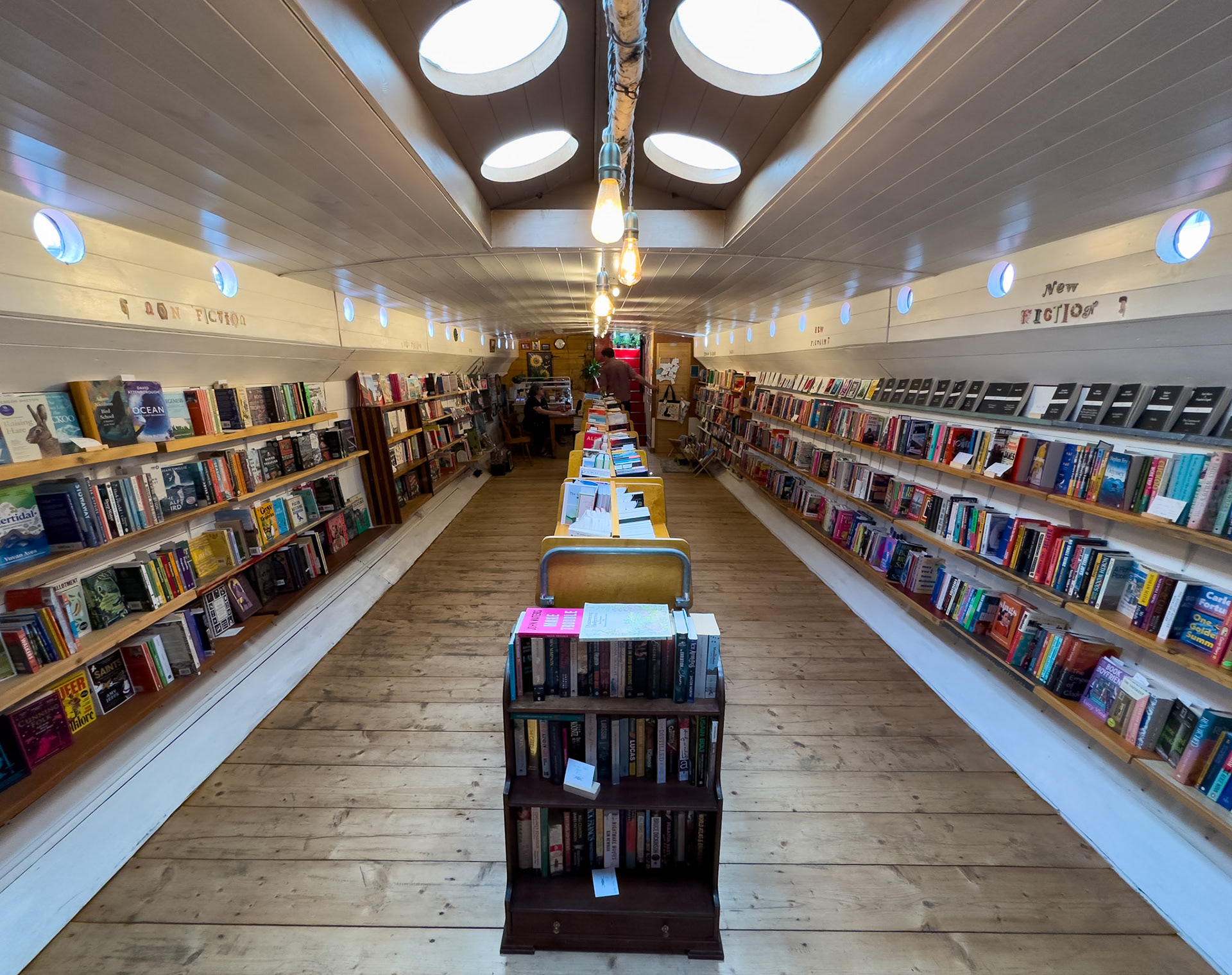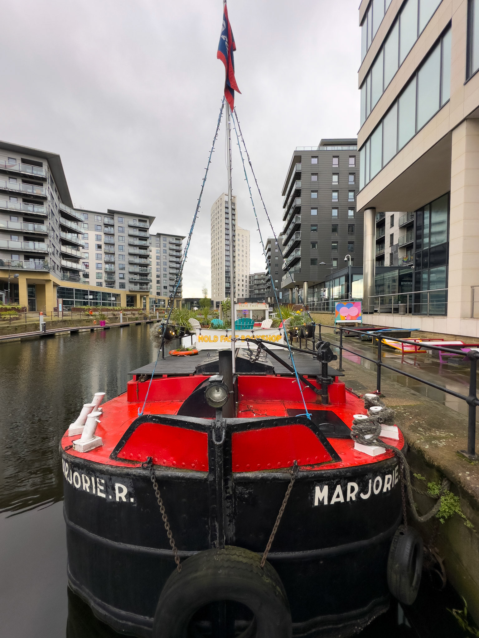 The barge was a burnt-out bare shell when Chris and Victoria Bonner found it abandoned in a boat yard in 2013. Chris and Vic bought and renovated the barge to create the Hold Fast bookshop which opened in November 2022. It is currently moored in Leeds docks. Hold Fast is a welcoming space with an outdoor seating area and brings character to the local area.