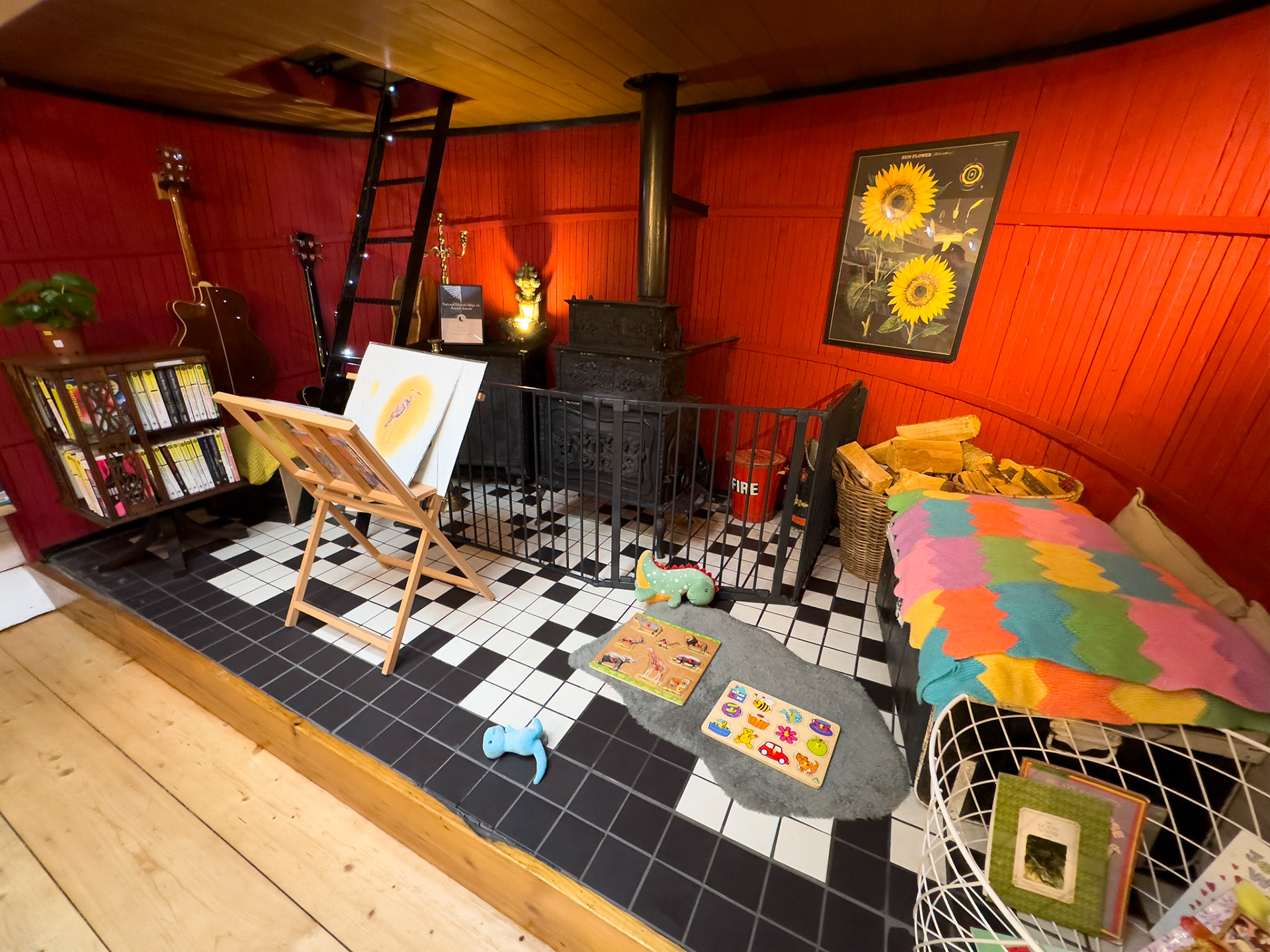 Chris a former boat taxi boatman undertook all the works himself- ‘At first, I suffered from imposter syndrome about doing the renovations myself. We couldn’t afford tradesmen so there was no choice but to do all the jobs ourselves. I ended up installing 26 port holes, spraying insulation foam internally and using scaffold planks to create internal walls.’