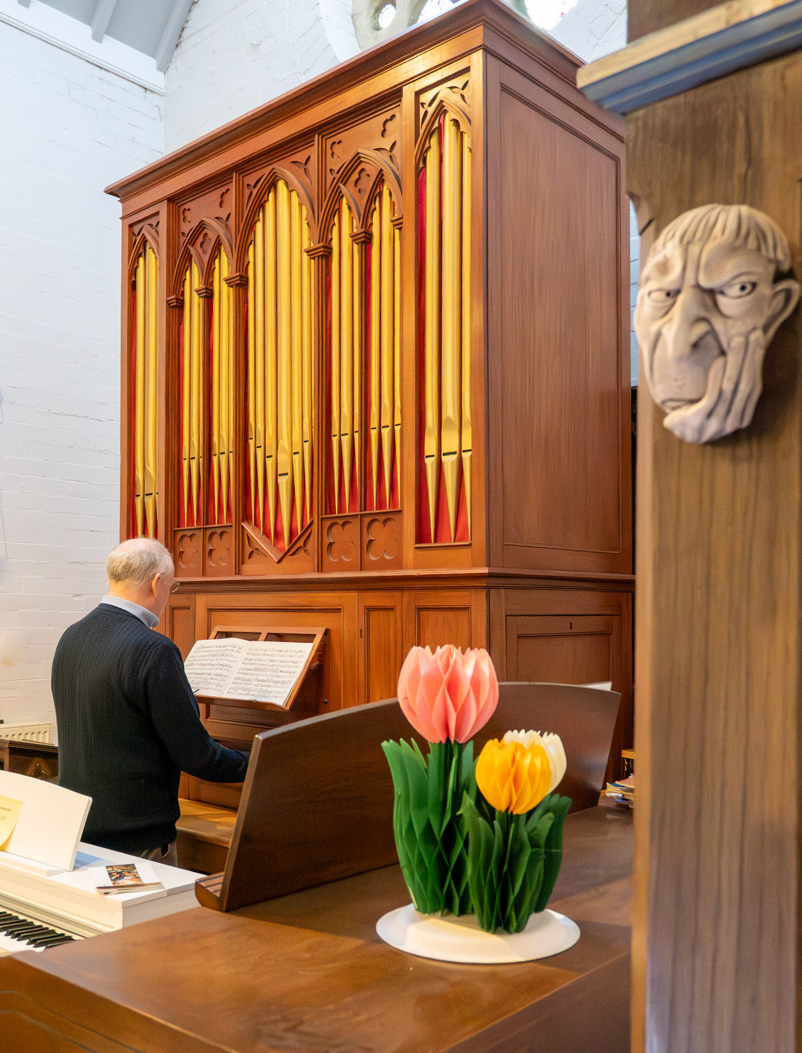 Graham feels the Church has a welcoming, calm, familiar feeling reminiscent of a school hall or chapel. People immediately feel at home in the building. While according to Annette (pictured), a Piano tuner who works from the centre, the personality of the church is ‘calmly stoic!’
