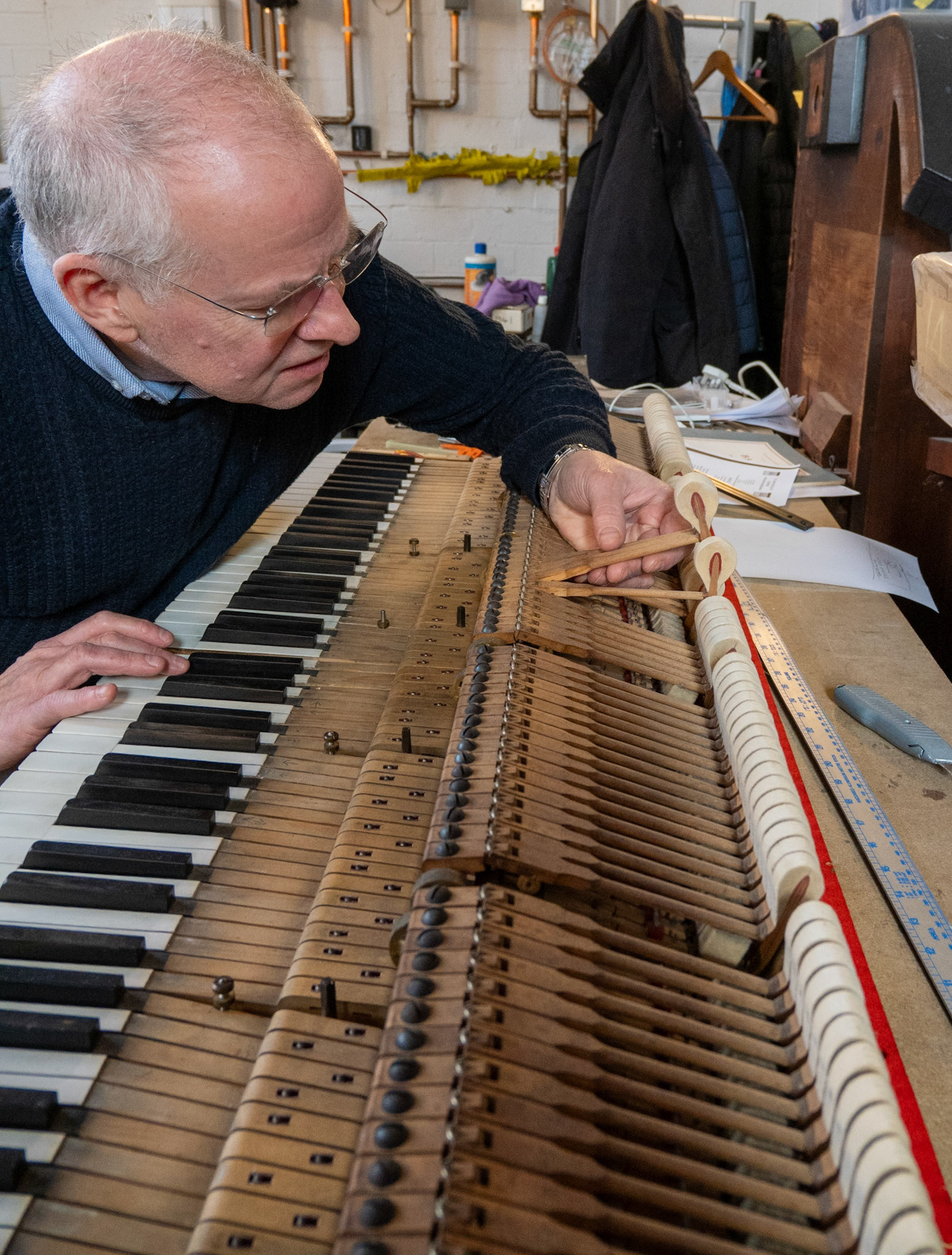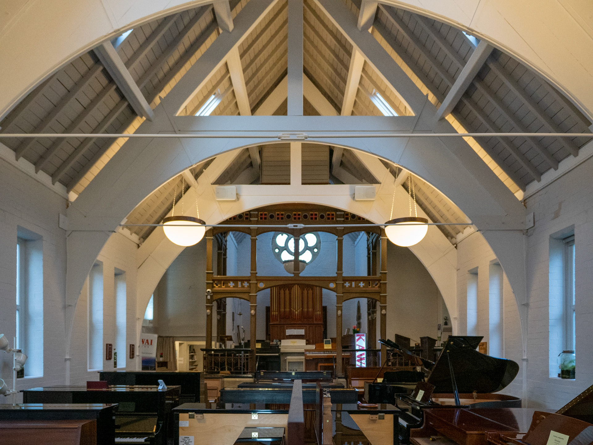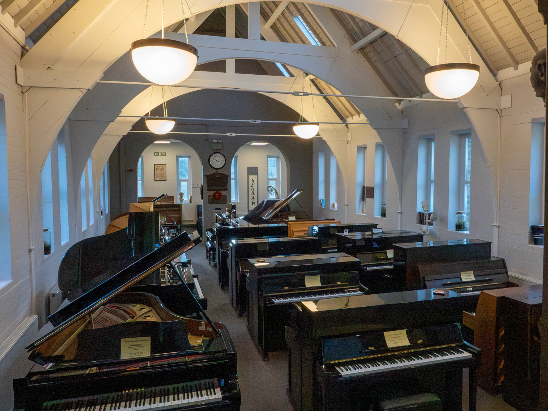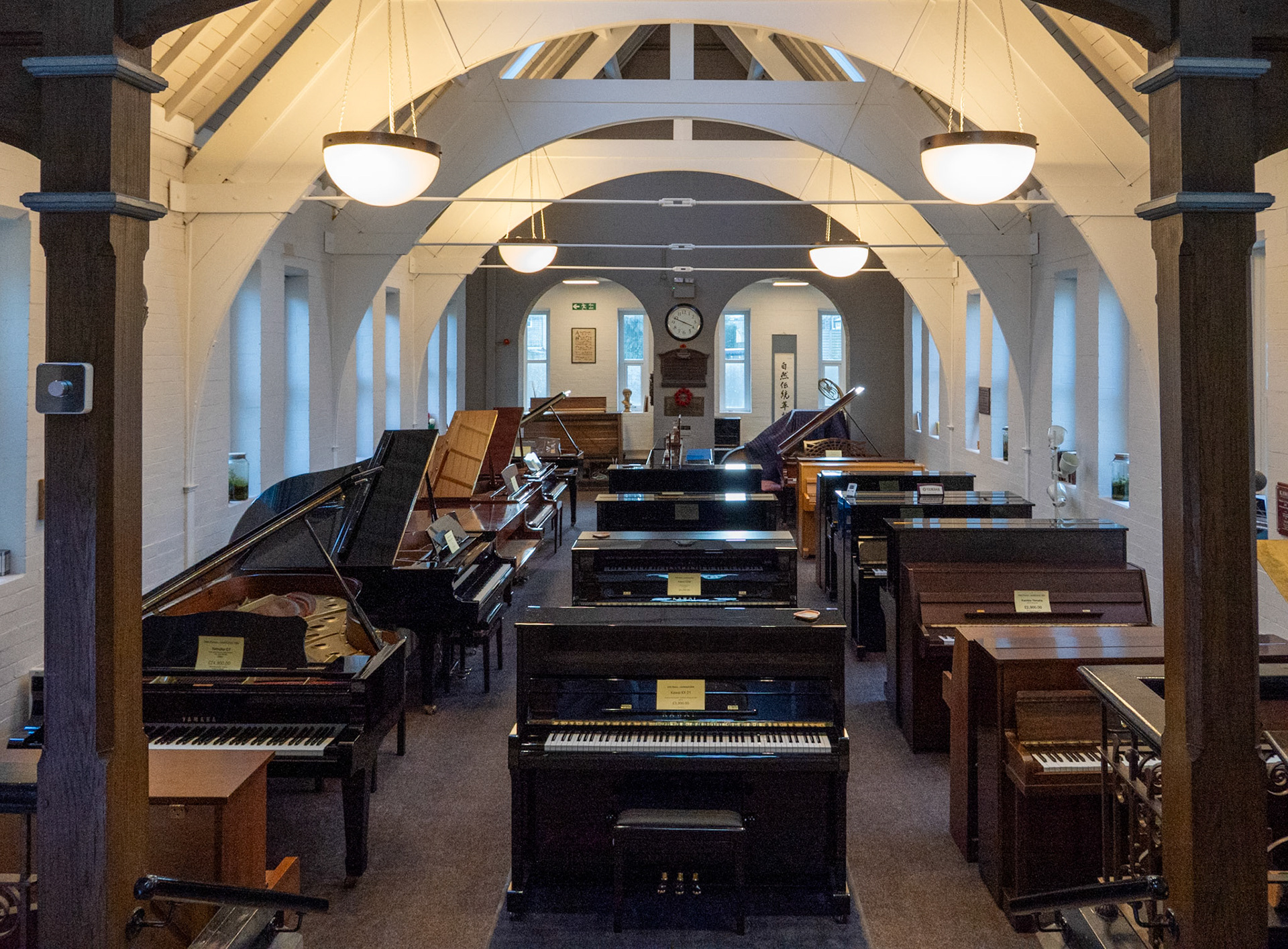 Between 60-80 pianos are on display at the showroom at any one time. An organ has been installed in the chancel and a workshop area, for piano renovations and repairs, is also located within the Church. Graham and his team have unique skills enabling them to restore and give new life to pianos of all ages.