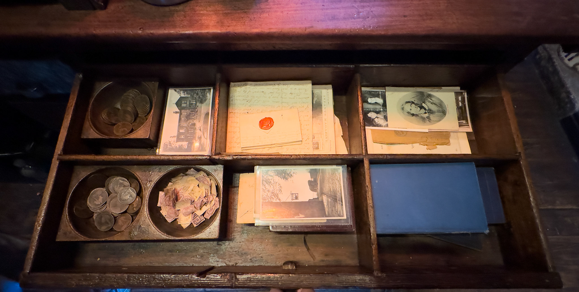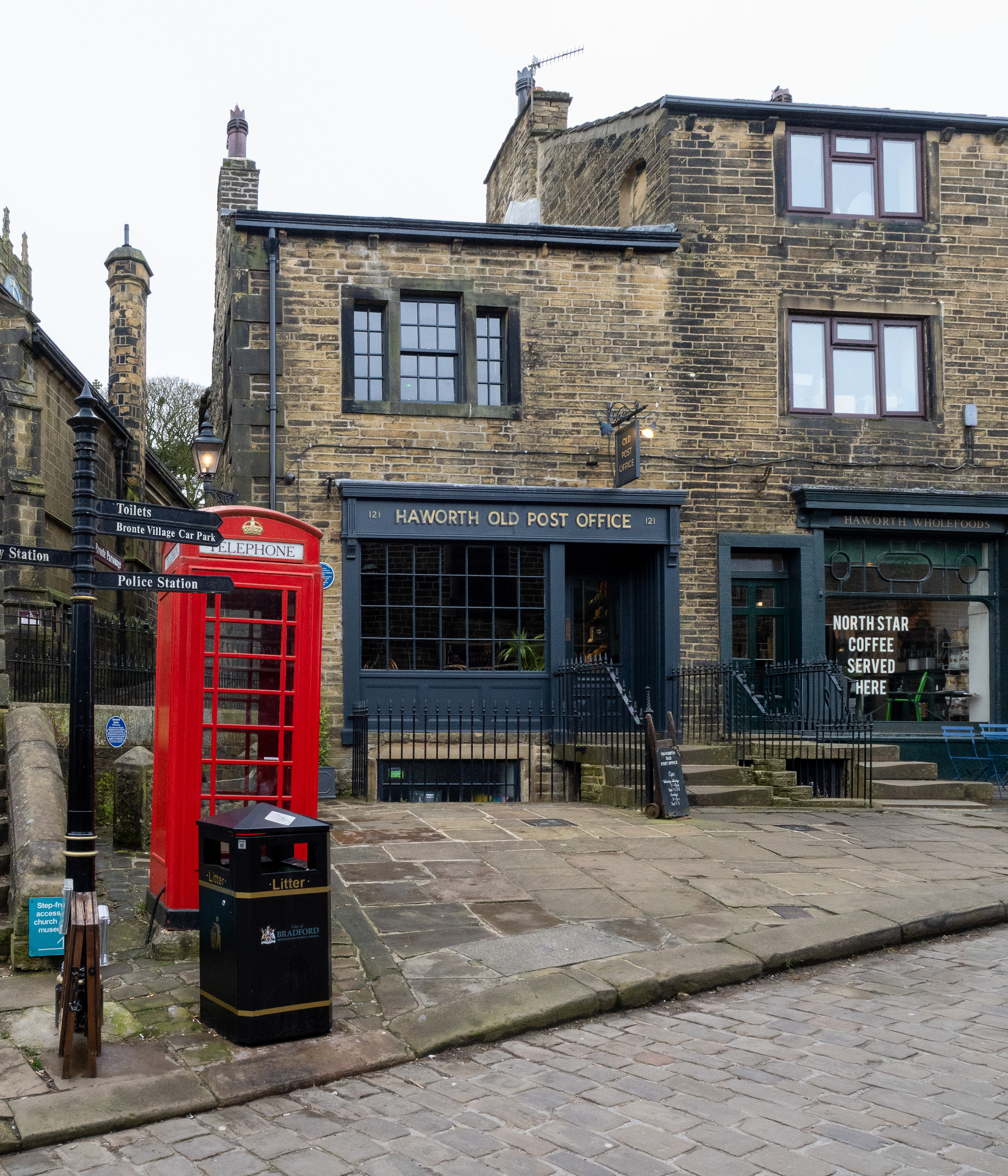 The Haworth Old Post Office is a historic 19th-century building which was used by the Brontë family. The original early victorian counter remains over which the famous sisters would have handed their novel manuscripts including Jane Eyre and Wuthering Heights for posting to London publishers and from where they would have collected mail. The building served as the village post office during the 1800s and included a Money Order office. The original cash draw also remains (pictured).