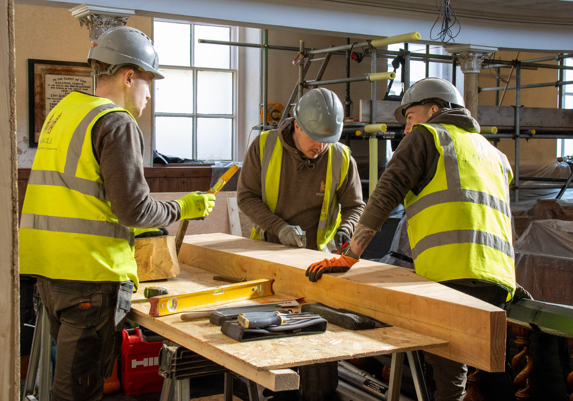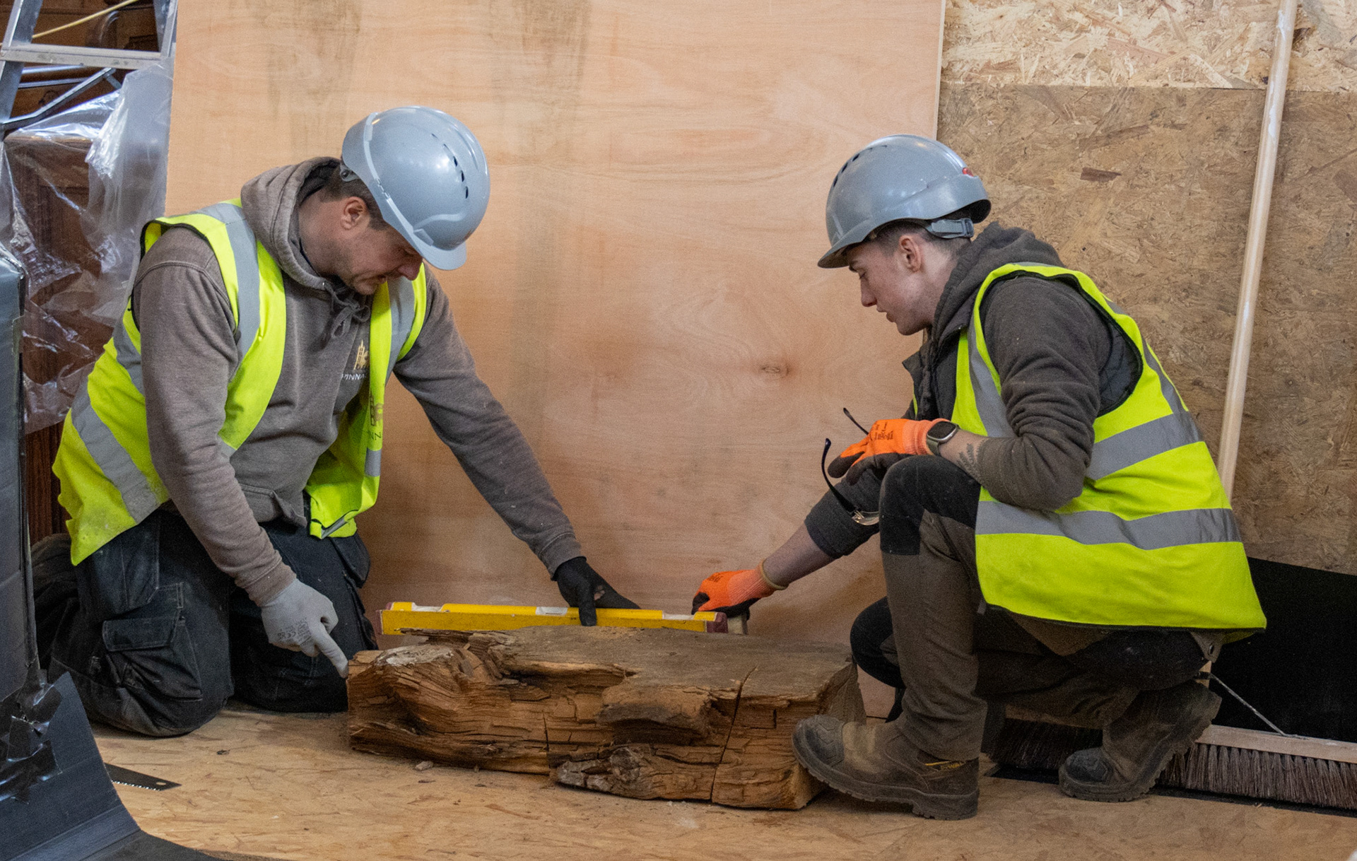 Apprentices working on the restoration